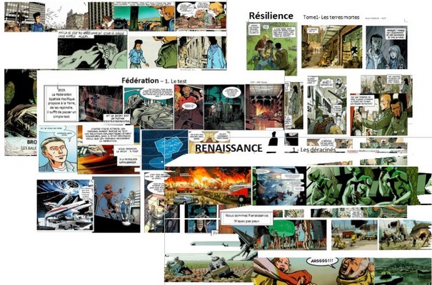 Résumé d'une BD en une planche (A3) - Photomontage numérique - Exposition au CDI.